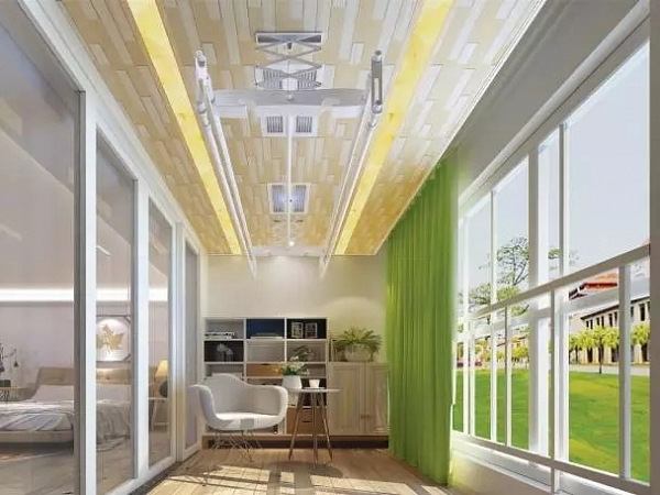如果說,前面智愛暖空調是“干衣衛士”,那么美爾凱特智麗晾衣機簡直就是干衣界的007!這種晾衣機從設計來看就非常講究,以陽臺吊頂一體完美融合,集晾衣、風干、烘干、消毒、照明五大功能于一體。